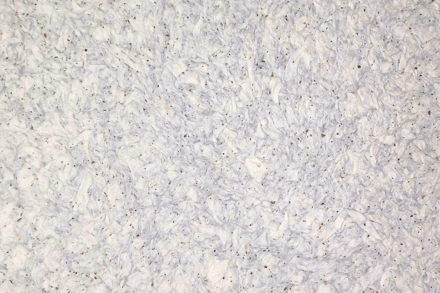 Світло-сірі рідкі шпалери ТМ Екобарви F-09 із серії Файн. Виконані із білої вторинної целюлози із додаванням кольорового штучного шовкового волокна. Також додана природная слюда, яка маскує сліди від комах та дрібні забруднення на поверхні.